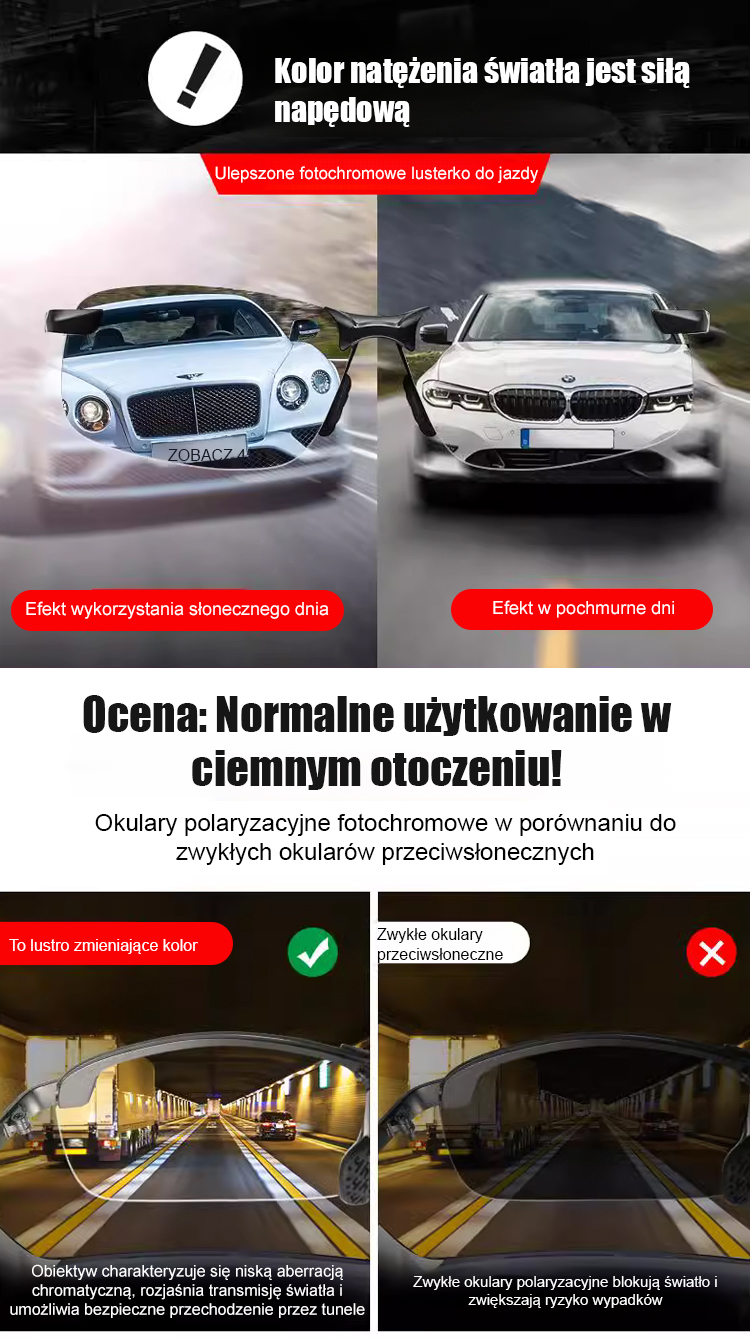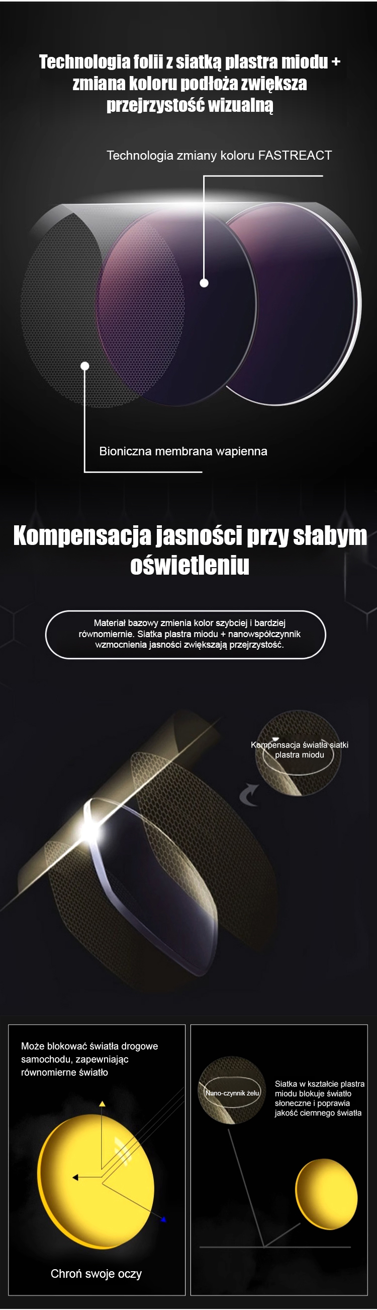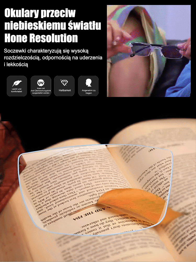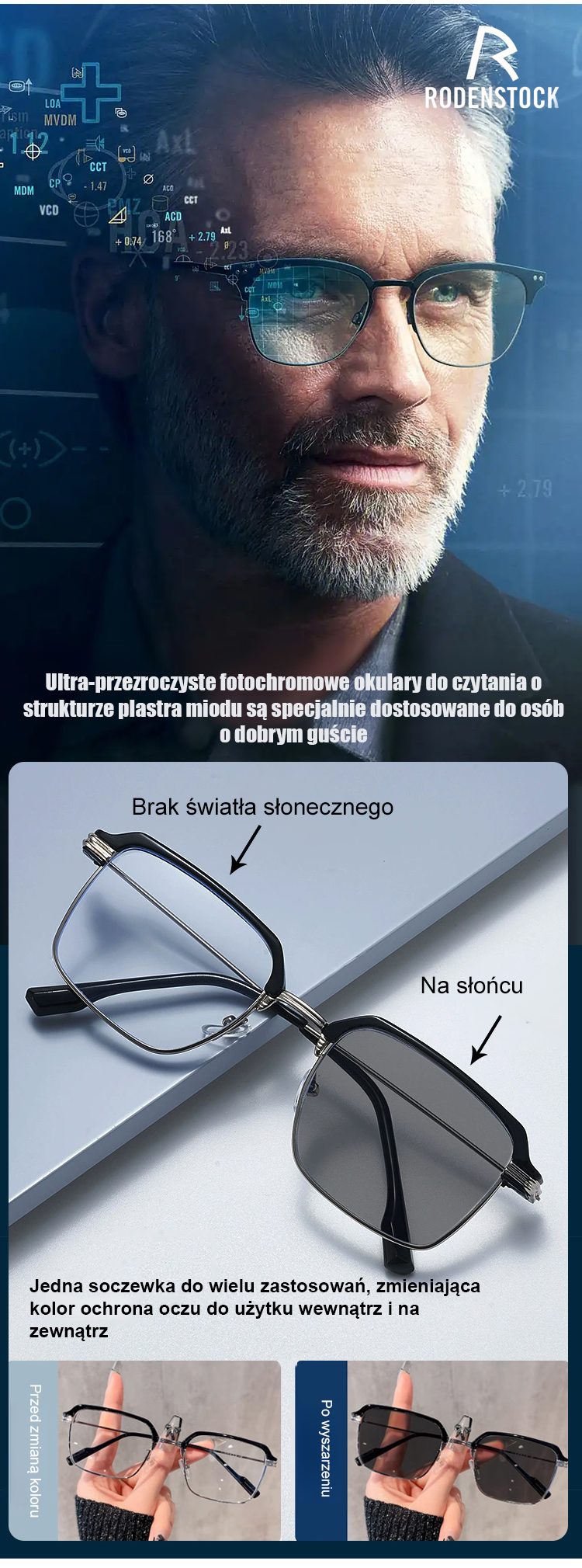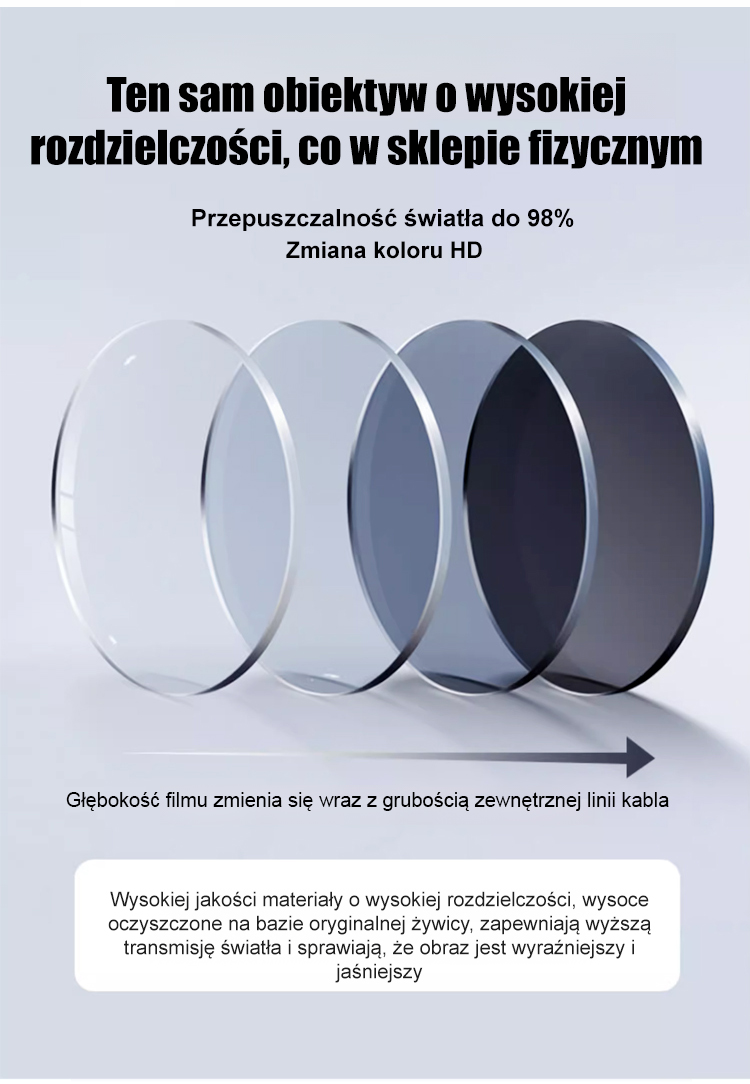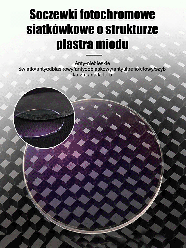 Niezwykle przejrzyste komórkowe fotochromowe okulary do prezbiopii